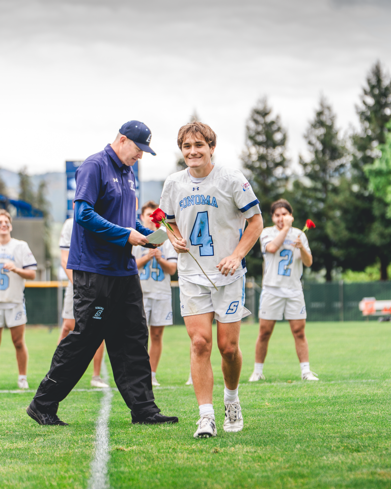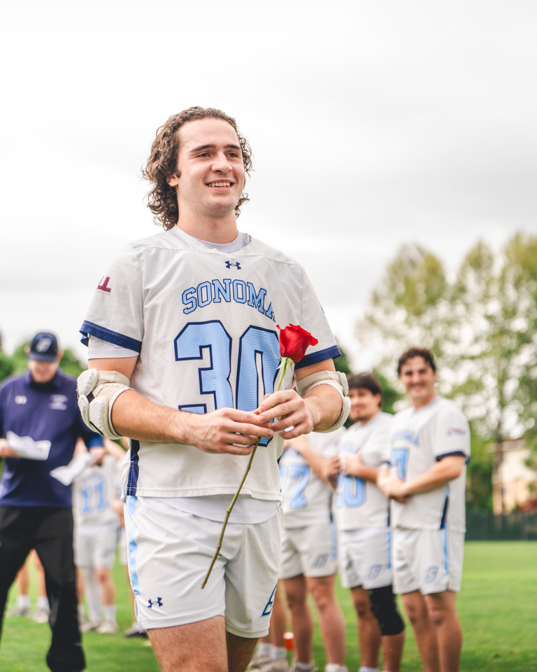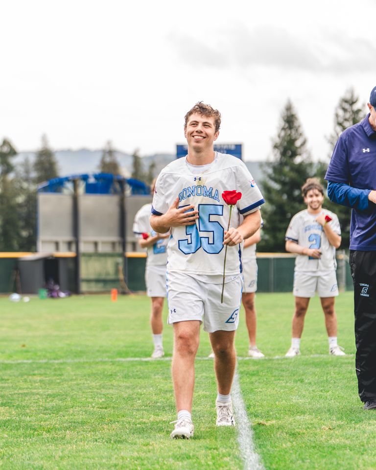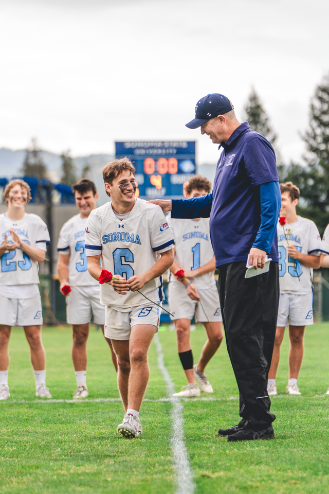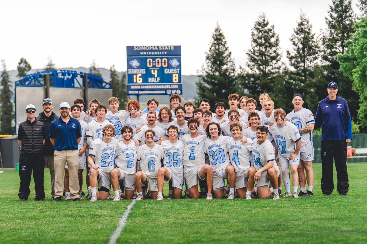 The Sonoma State Men's Lacrosse team defeated the University of Nevada, Reno on Saturday, April 11th by a score of 16-8 on campus at Seawolf Stadium. After the game, each of the eight seniors were honored for their achievements as student athletes in a senior ceremony with their teammates, friends, and families. The Seawolves finish the regular season 8-4, and 3-3 (#4 seed) in the WCLL entering the WCLL playoffs this weekend.